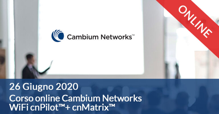26 Ottobre: Webinar Cambium cnPilotXirrus, Wi-Fi e Switch Cloud Managed per reti WiFi4EU e Hotspot 2.0 Vai al corso »