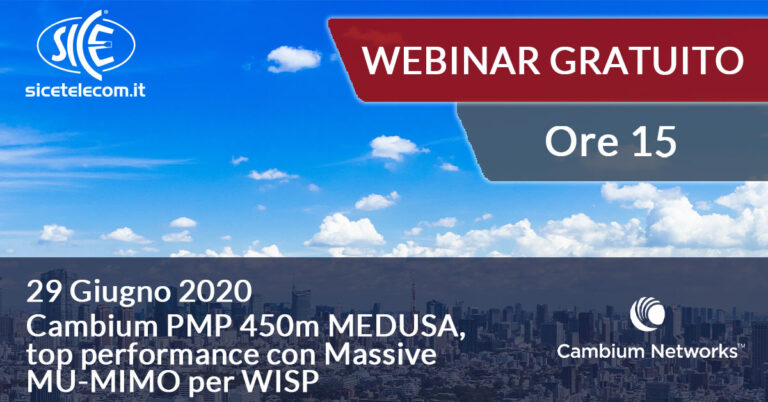 4 Giugno: Webinar Cambium PMP 450m MEDUSA, top performance con Massive MU-MIMO per WISP Vai al corso »
