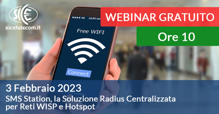 3 Febbraio: Webinar SICE SMS Station, la Soluzione Radius Centralizzata per Reti WISP e Hotspot 2022 Vai al corso »