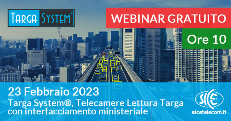 28 Febbraio: Webinar Targa System®, Telecamere Lettura Targa evolute con interfacciamento ministeriale 2022 Vai al corso »