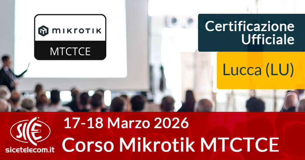 SICE è lieta di presentare il Nuovo Corso Ufficiale italiano di Certificazione MIKROTIK MTCSWE (MikroTik Certified Switching Engineer) svolto su 2 giorni. La certificazione MTCSWE è il percorso formativo MikroTik rivolto a WISP, Internet Service Provider, Sistemisti di rete e System Integrators che desiderano implementare reti basate su Layer 2. Al termine di questa sessione di formazione, il tecnico […]