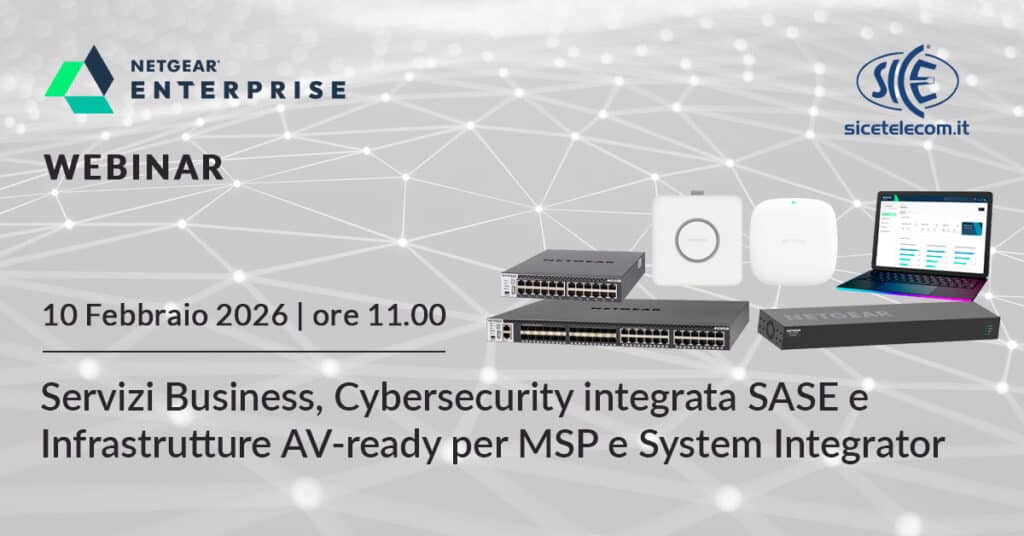 10 Febbraio 2026: Webinar NETGEAR. Servizi Business, Cybersecurity integrata SASE e infrastrutture AV-ready per MSP e System Integrator
