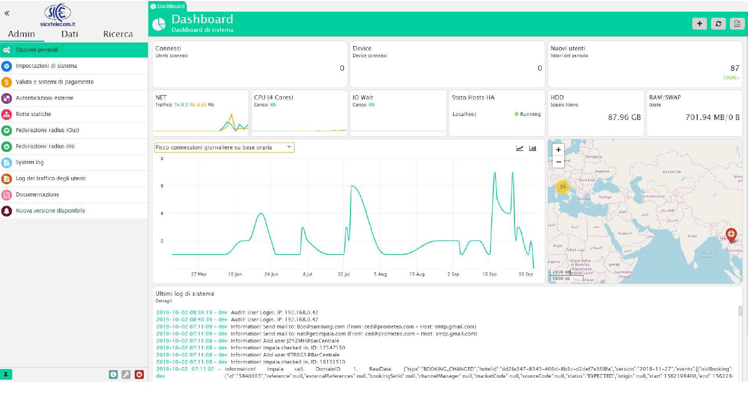 SMS Station è una piattaforma unica per la gestione di punti hotspot WiFi 6 e connettività domestica e aziendale affidabile, ideale per i WISP e i System Integrator che vogliono ridimensionare i costi owner per propri loro clienti e offrire un servizio affidabile, performante e allo stesso tempo semplice da gestire. SMS Station offre una tecnologia che la rende unica nel mercato ed ideale per progetti di Wifi 6, WiFi4EU, Retail e Hospitality (SMS Station è compatibile con Impala, il software che fornisce, gestisce e supporta le integrazioni PMS, collegando 80.000 hotel in tutto il mondo attraverso 11 PMS). L’innovativo sistema radius di autenticazione clienti basato su SMS e/o Social Network permette ai gestori di registrare gli account in modo automatico. In associazione a PayPal, SMS Station fornisce anche un sistema di prepagato (voucher). Inoltre il sistema ha la funzione multilingua per la pagina di login (8 lingue diverse), genera automaticamente le mappe degli hotspot e invia e riceve SMS tramite gateway internet o chiavetta USB. Grazie al “Welcome Portal” è inoltre possibile veicolare contenuti pubblicitari nella login page, mostrare previsioni meteo, video di youtube, immagini personalizzate prese dinamicamente da Instagram o Flickr tramite apposite app. SMS Station è compatibile con i prodotti Wifi 6 Cambium Networks e con i modem e router MikroTik e TP-Link.