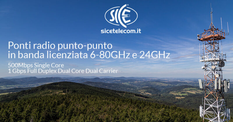 I ponti radio per sistemi punto-punto di SICE sono disponibili fino a 500Mbps Single Core e fino a 1 Gbps Full Duplex Dual Core Dual Carrier.