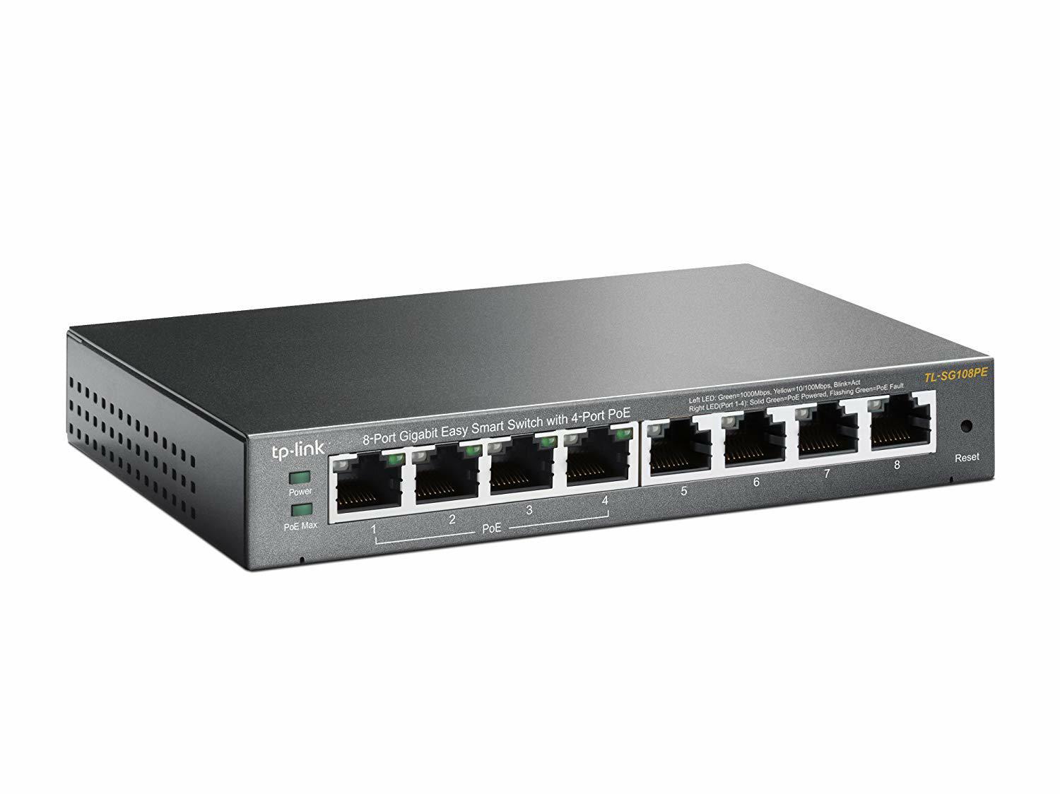 I prodotti Tp-link sono la scelta ideale per reti wireless, cablate, in fibra ottica o di videosorveglianza, ed in particolare il prodotto 8-Port Gigabit Desktop PoE Easy Smart Switch 8 Gigabit RJ45 (Tp-link TL-SG108PE).
