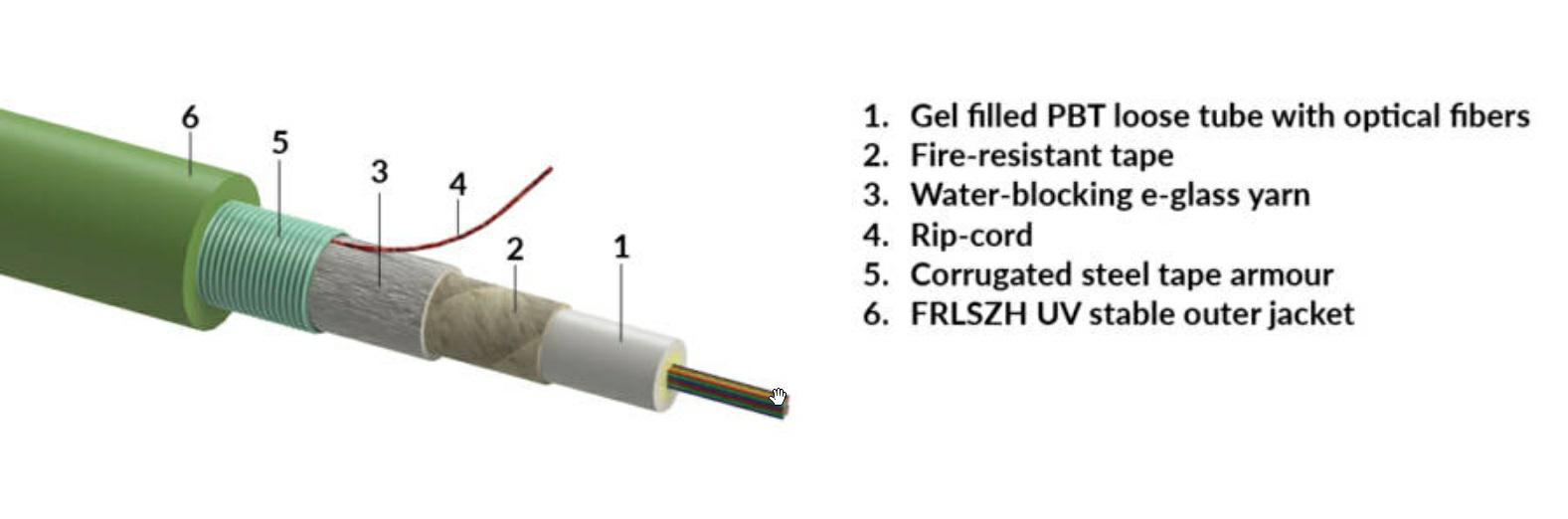 R&m 855992 della linea R&M FIBER OPTICS , prodotto Central loose tube cable12 fibre fire-resistant FRLSZH.