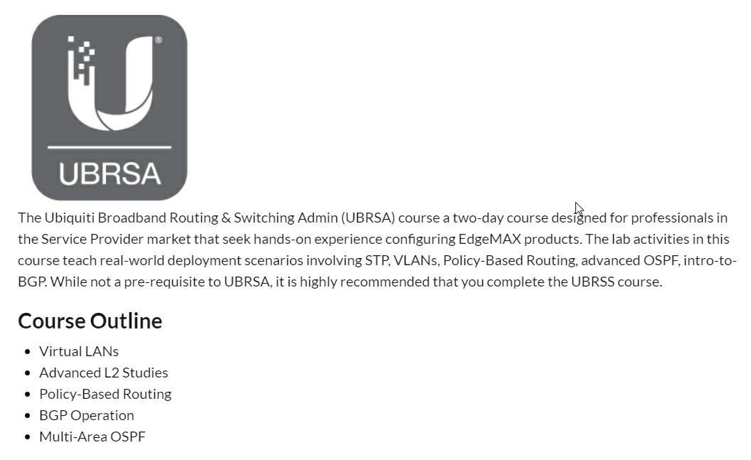 Ubiquiti SICE-UBRSA della linea FORMAZIONE , prodotto Ubiquiti Broadband Routing & Switching Admin (UBRSA).