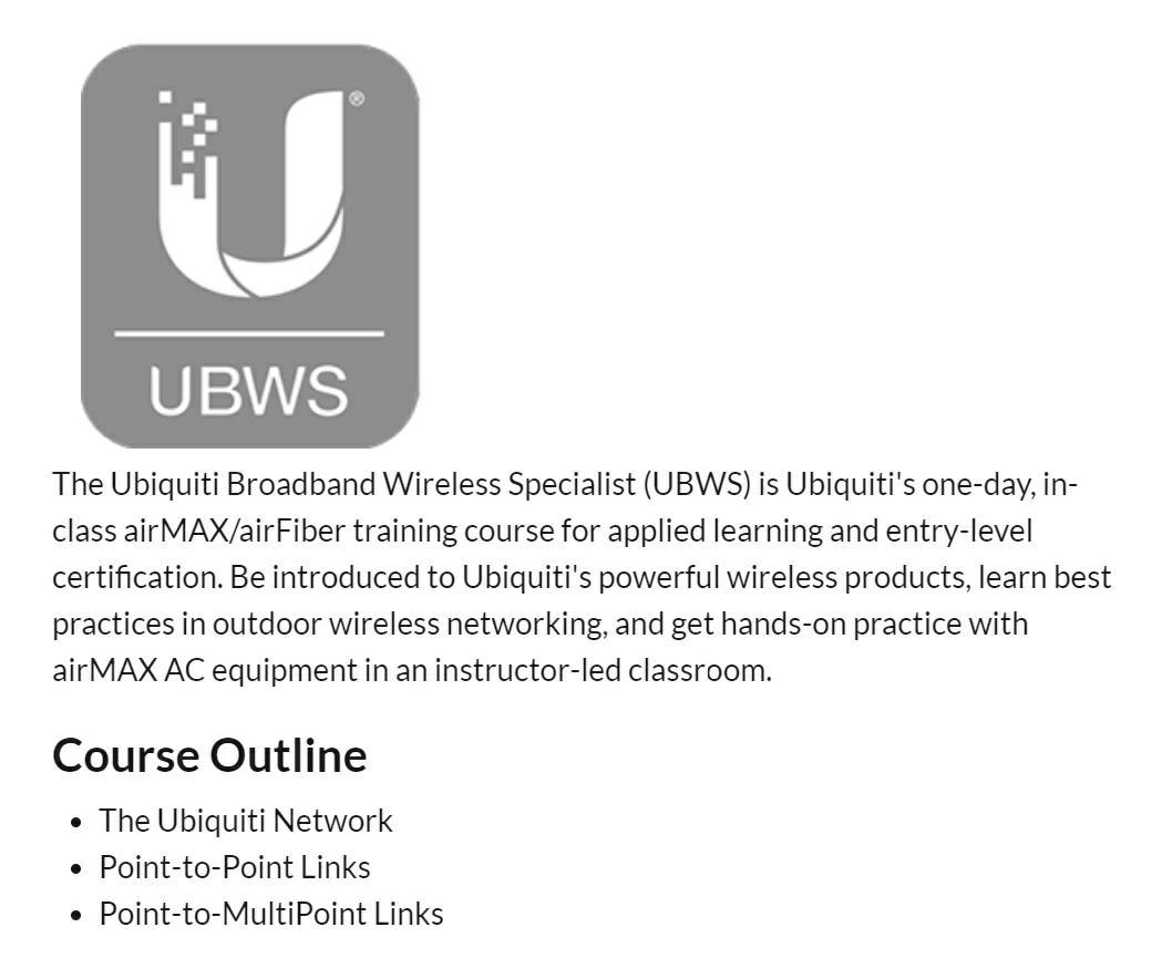 Ubiquiti SICE-UBWS della linea FORMAZIONE , prodotto Ubiquiti Broadband Wireless Specialist.