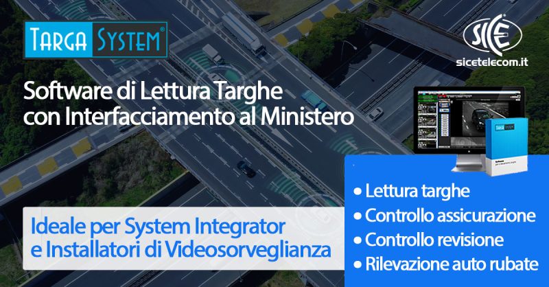 SICE distribuisce Targa System ®, la soluzione completa di lettura targhe, controllo revisione e assicurazione scadute e furto auto.